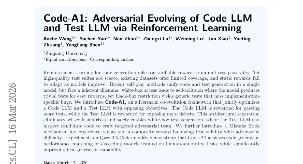 11. Code-A1: Adversarial Evolving of Code LLM and Test LLM via Reinforcement Learning
