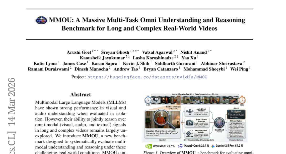 – Introducing MMOU, a new benchmark to evaluate multimodal understanding and reasoning under real-world conditions in long and complex videos.