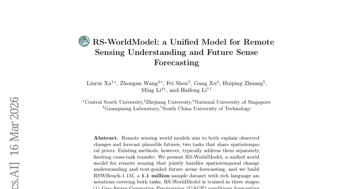 ๐ Keywords: Remote Sensing, World Model, Spatiotemporal Change, Text-Guided Forecasting, Reinforcement Optimization
