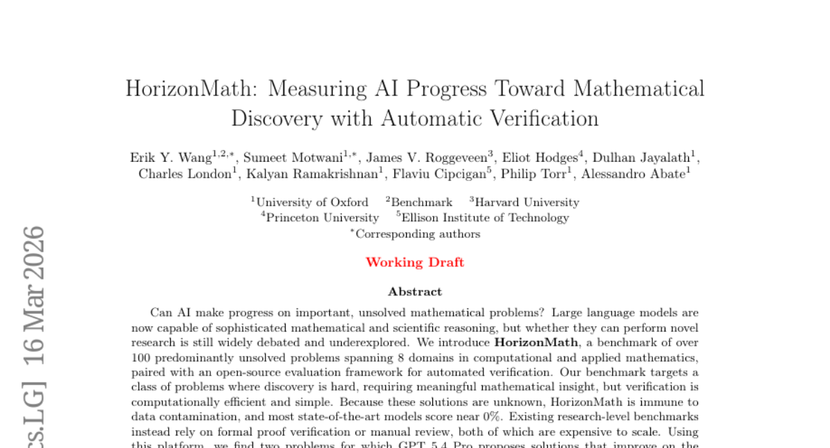– The objective is to assess if AI can make progress on unsolved mathematical problems through the introduction of HorizonMath, a benchmark specifically designed for this purpose.