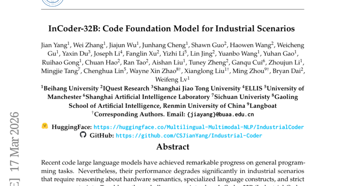 1. InCoder-32B: Code Foundation Model for Industrial Scenarios