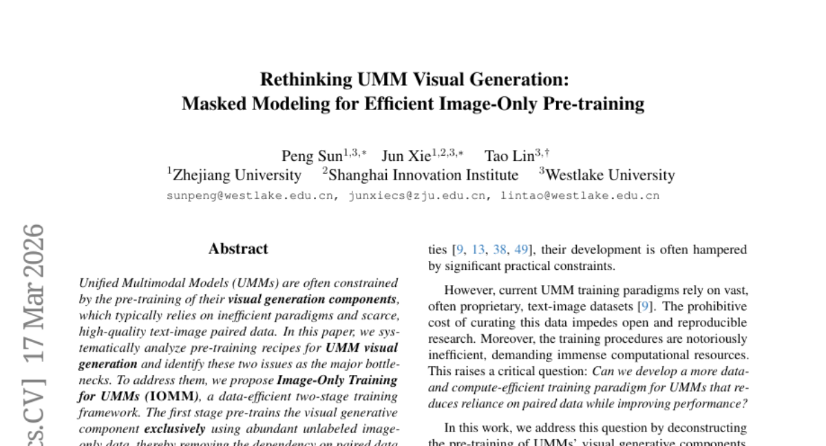 48. Rethinking UMM Visual Generation: Masked Modeling for Efficient Image-Only Pre-training