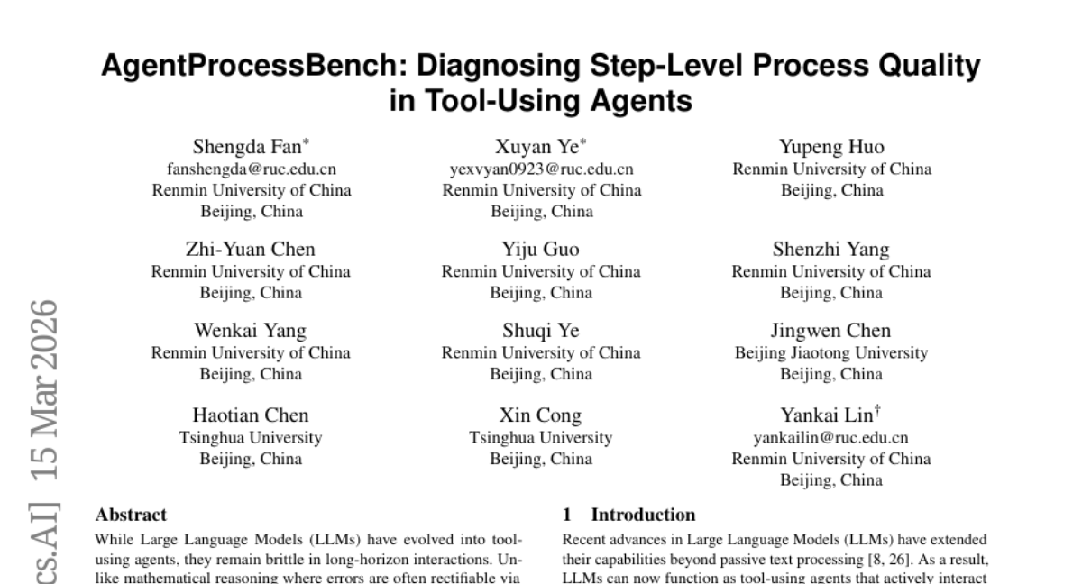 46. AgentProcessBench: Diagnosing Step-Level Process Quality in Tool-Using Agents