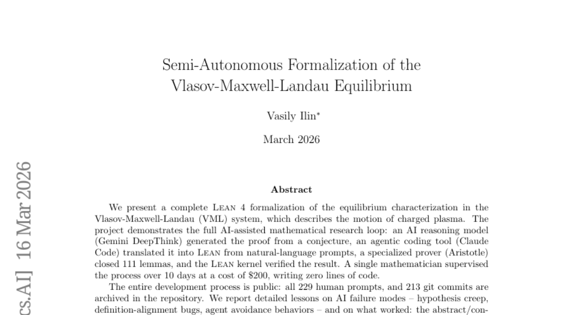 ๐Ÿ”‘ Keywords: AI-assisted mathematical research, Vlasov-Maxwell-Landau system, Gemini DeepThink, Claude Code, Lean 4