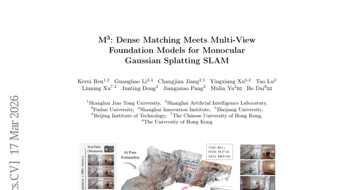 12. M^3: Dense Matching Meets Multi-View Foundation Models for Monocular Gaussian Splatting SLAM