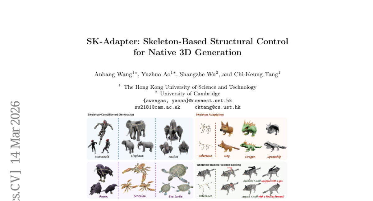 41. SK-Adapter: Skeleton-Based Structural Control for Native 3D Generation