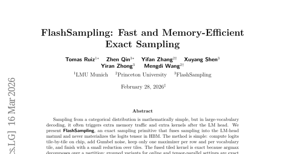 – Introduce FlashSampling, a method to improve efficiency in categorical sampling by integrating it into the language model head matmul, reducing memory overhead and decoding time.