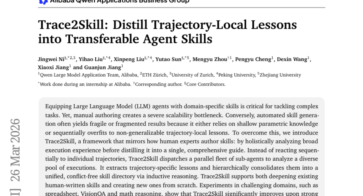 15. Trace2Skill: Distill Trajectory-Local Lessons into Transferable Agent Skills