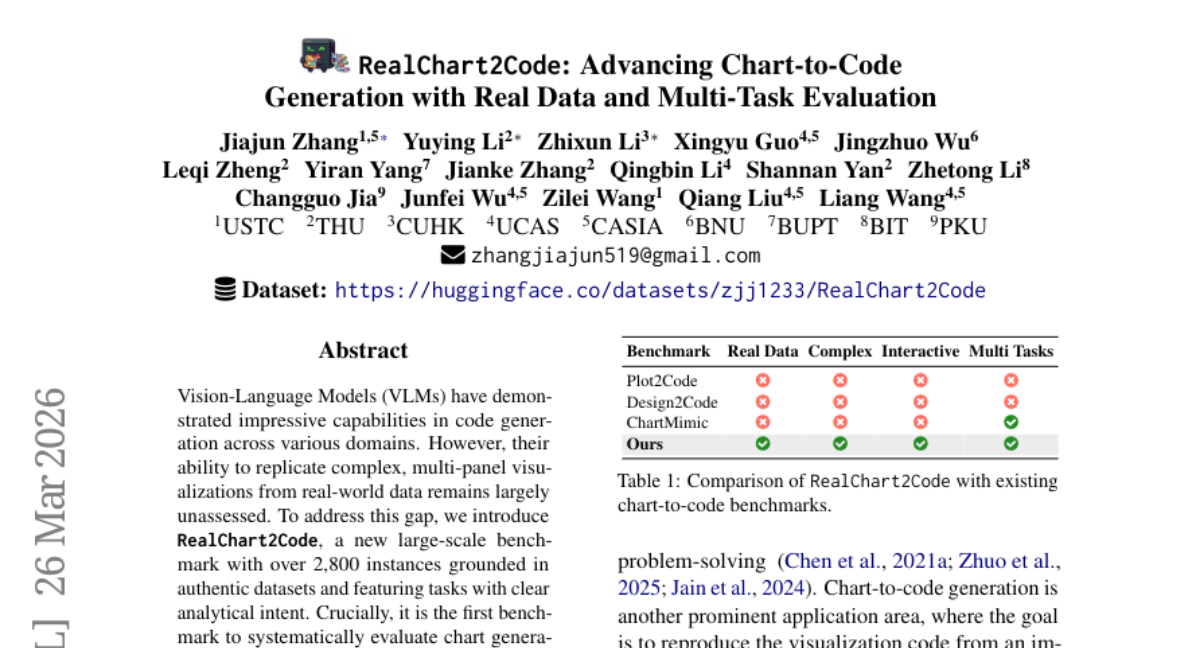 – The primary objective is to introduce RealChart2Code, a large-scale benchmark designed to assess Vision-Language Models’ capability in generating complex, multi-panel charts from real-world data.