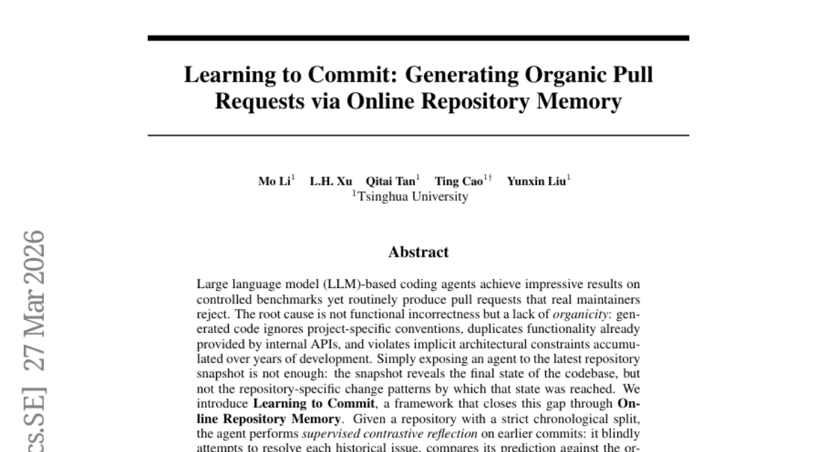 ๐Ÿ”‘ Keywords: LLM coding agents, Learning to Commit, Online Repository Memory, coding style, API reuse