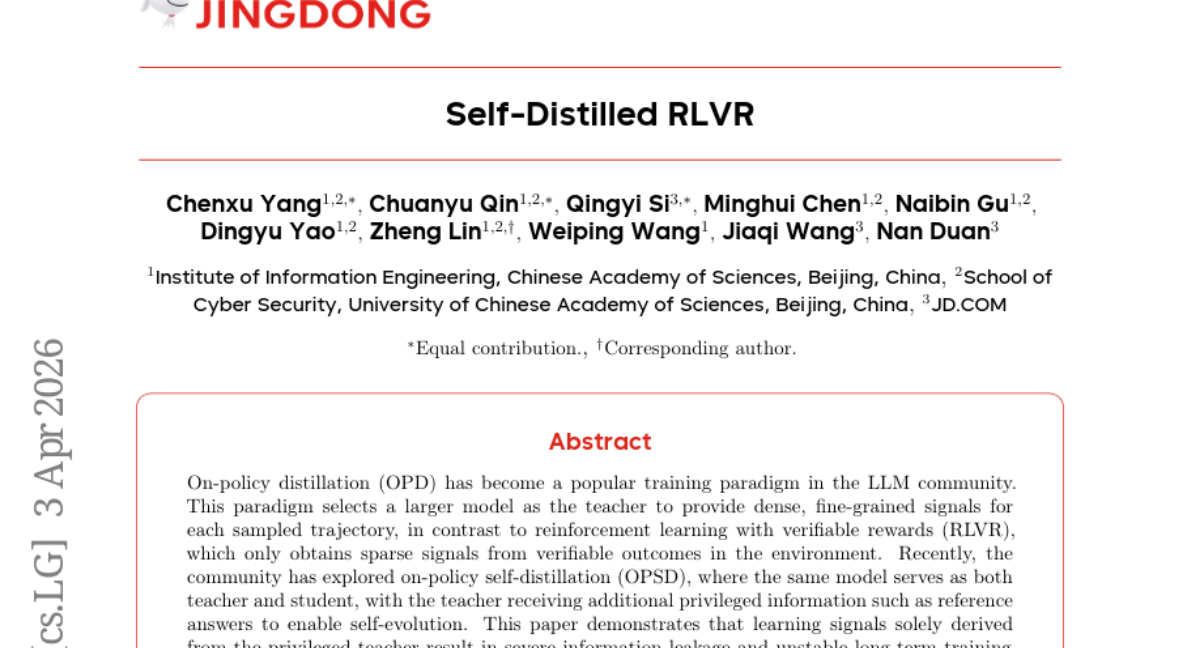 ๐Ÿ”‘ Keywords: Reinforcement Learning, Verifiable Rewards, Self-distillation, Training Stability, On-policy Distillation