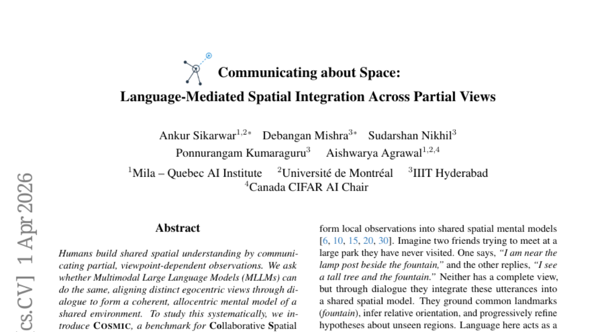 ๐Ÿ”‘ Keywords: MLLMs, Collaborative Spatial Communication, egocentric views, anchor objects, shared mental model