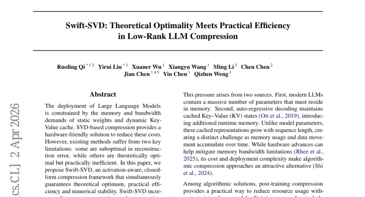 5. Swift-SVD: Theoretical Optimality Meets Practical Efficiency in Low-Rank LLM Compression