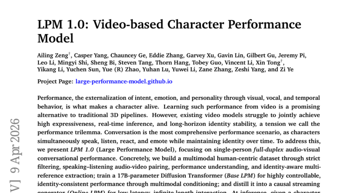 – The study aims to develop a large-scale multimodal model, LPM 1.0, that achieves real-time conversational character performance generation with identity consistency.
