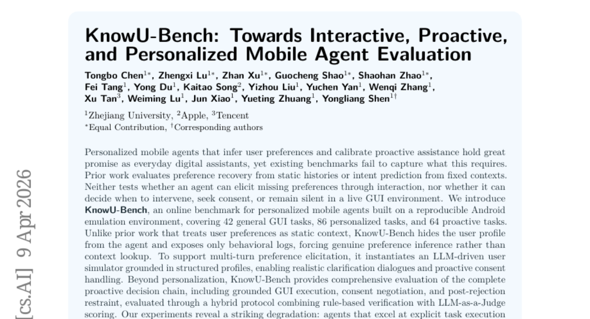 – To evaluate the true preference inference and proactive assistance capabilities of personalized mobile agents in real-world GUI environments using a comprehensive benchmark known as KnowU-Bench.