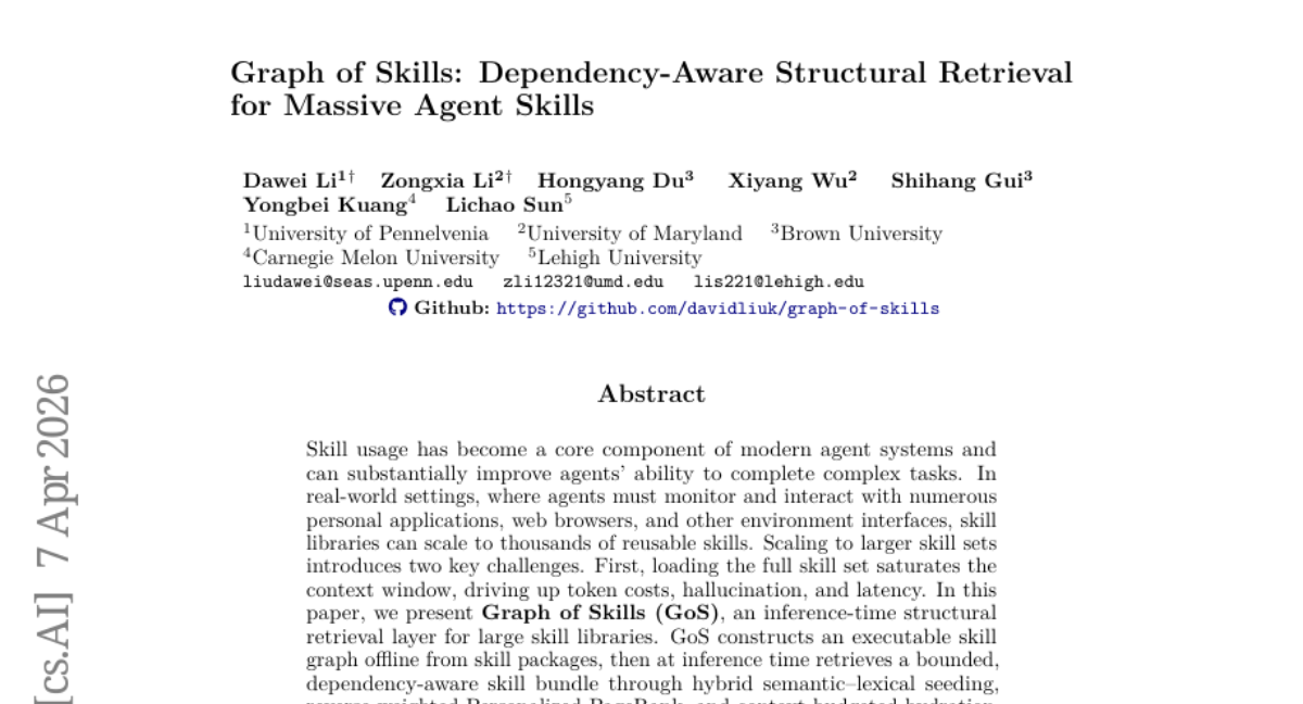 – To enhance the efficiency of large skill libraries by developing the Graph of Skills (GoS) for improved inference and reduced token usage.