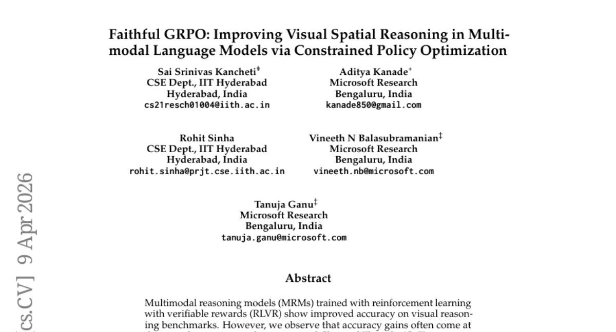 14. Faithful GRPO: Improving Visual Spatial Reasoning in Multimodal Language Models via Constrained Policy Optimization