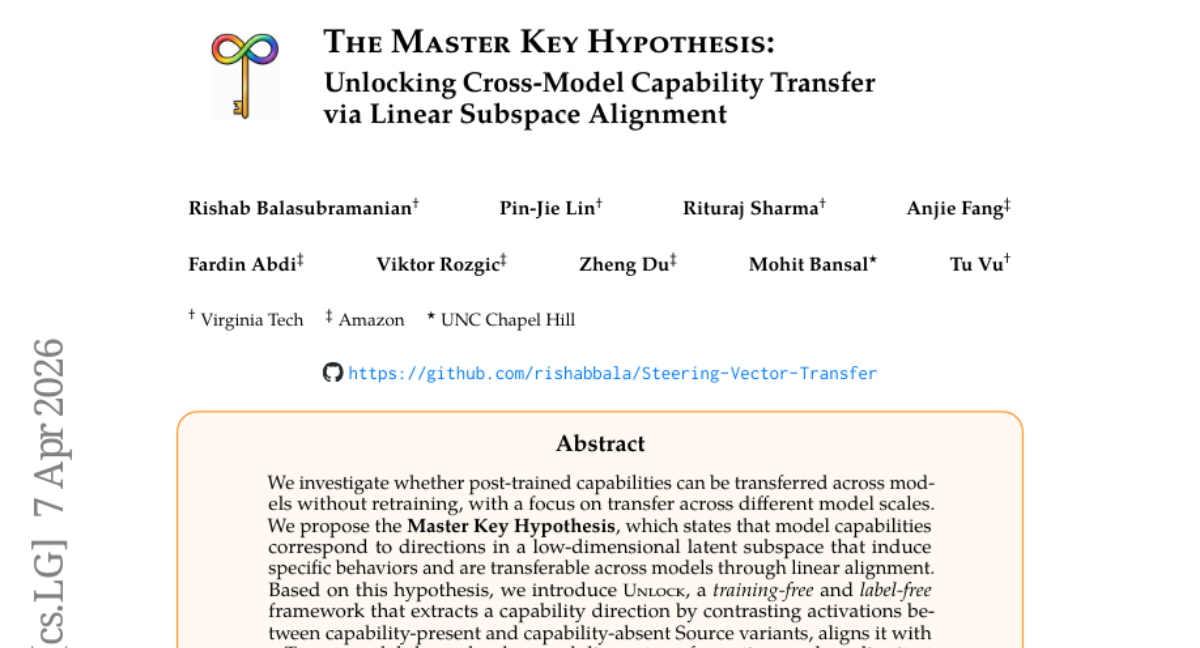 – The researchers propose the Master Key Hypothesis, identifying that capabilities correspond to directions in a latent subspace. The study introduces UNLOCK, a training-free and label-free framework using linear alignment to apply these capabilities at inference time.