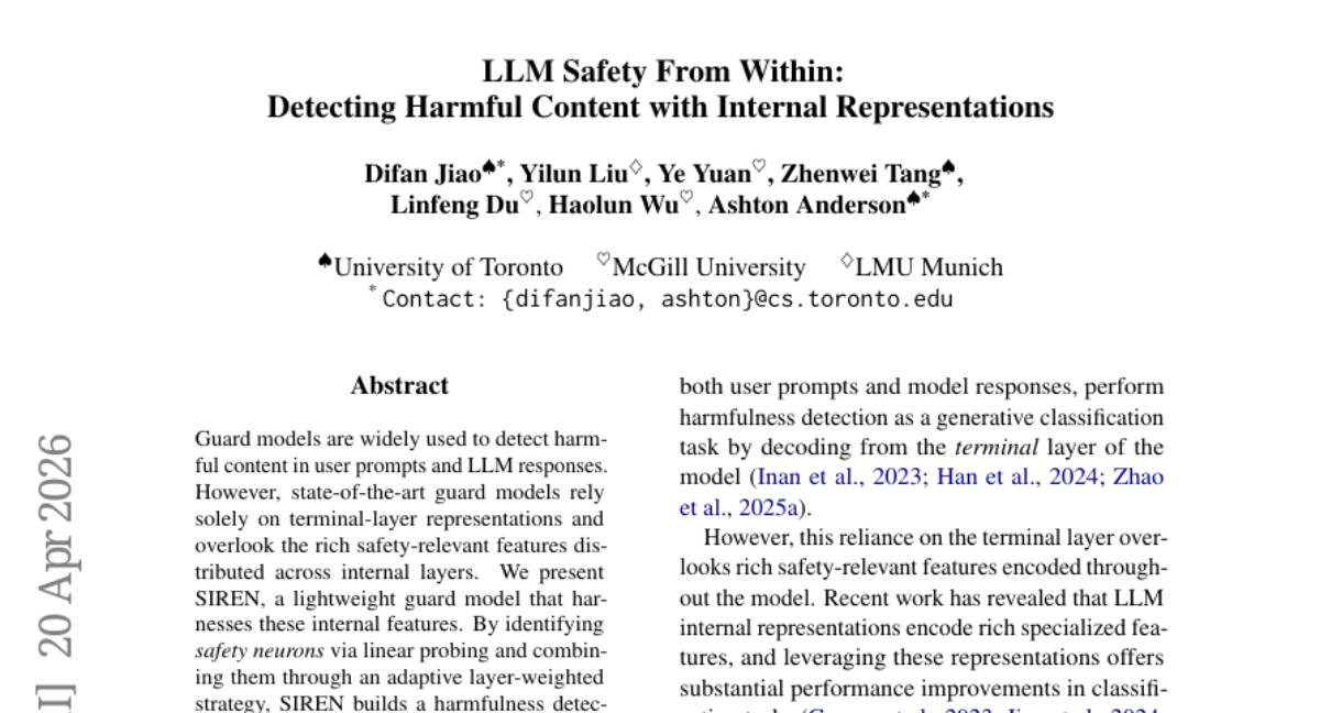 ๐Ÿ”‘ Keywords: SIREN, Guard Models, Internal Features, Harmfulness Detection, Inference Efficiency
