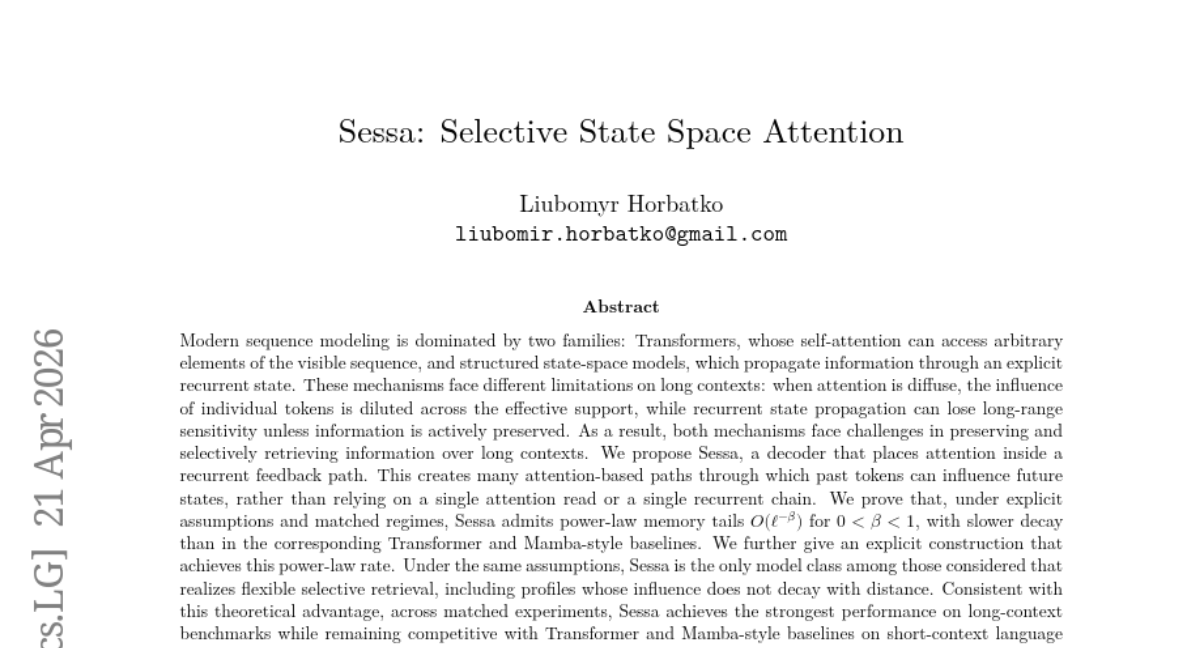 ๐Ÿ”‘ Keywords: Sessa, attention, recurrent feedback path, power-law memory, selective retrieval